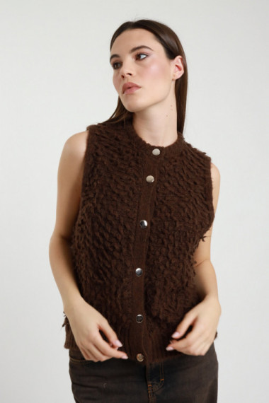Gilet in Maglia con Bottoni e Tasche Frontali Finte.