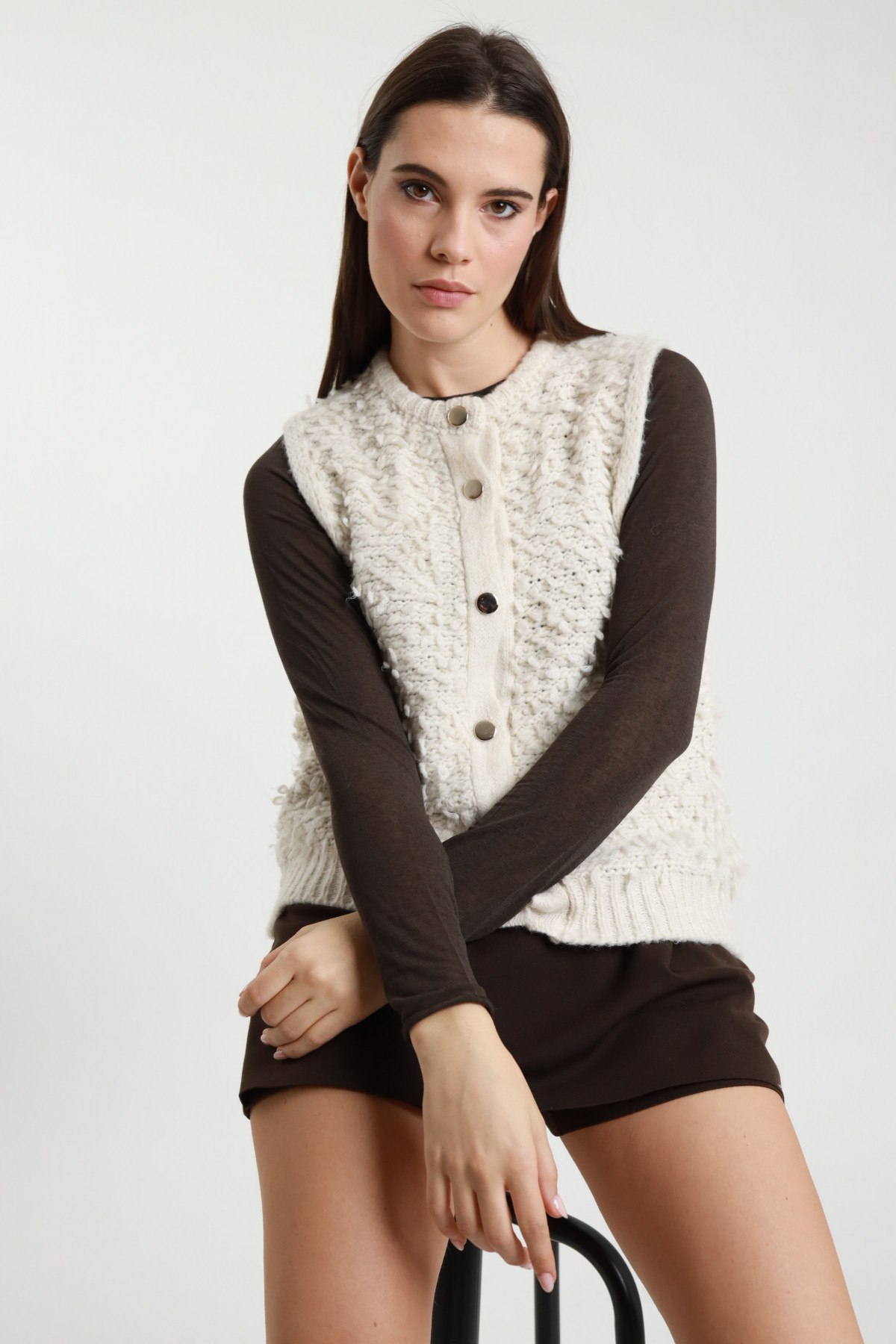 Gilet in Maglia con Bottoni e Tasche Frontali Finte.
