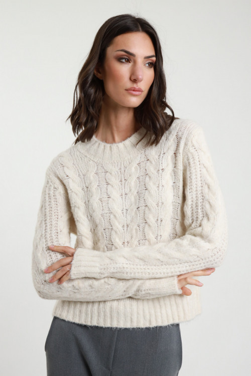 Maglioncino Gircollo con Trecce e Paillettes. Orli a Coste. Slim Fit.