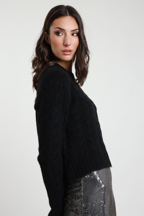 Maglioncino Gircollo con Trecce e Paillettes. Orli a Coste. Slim Fit.