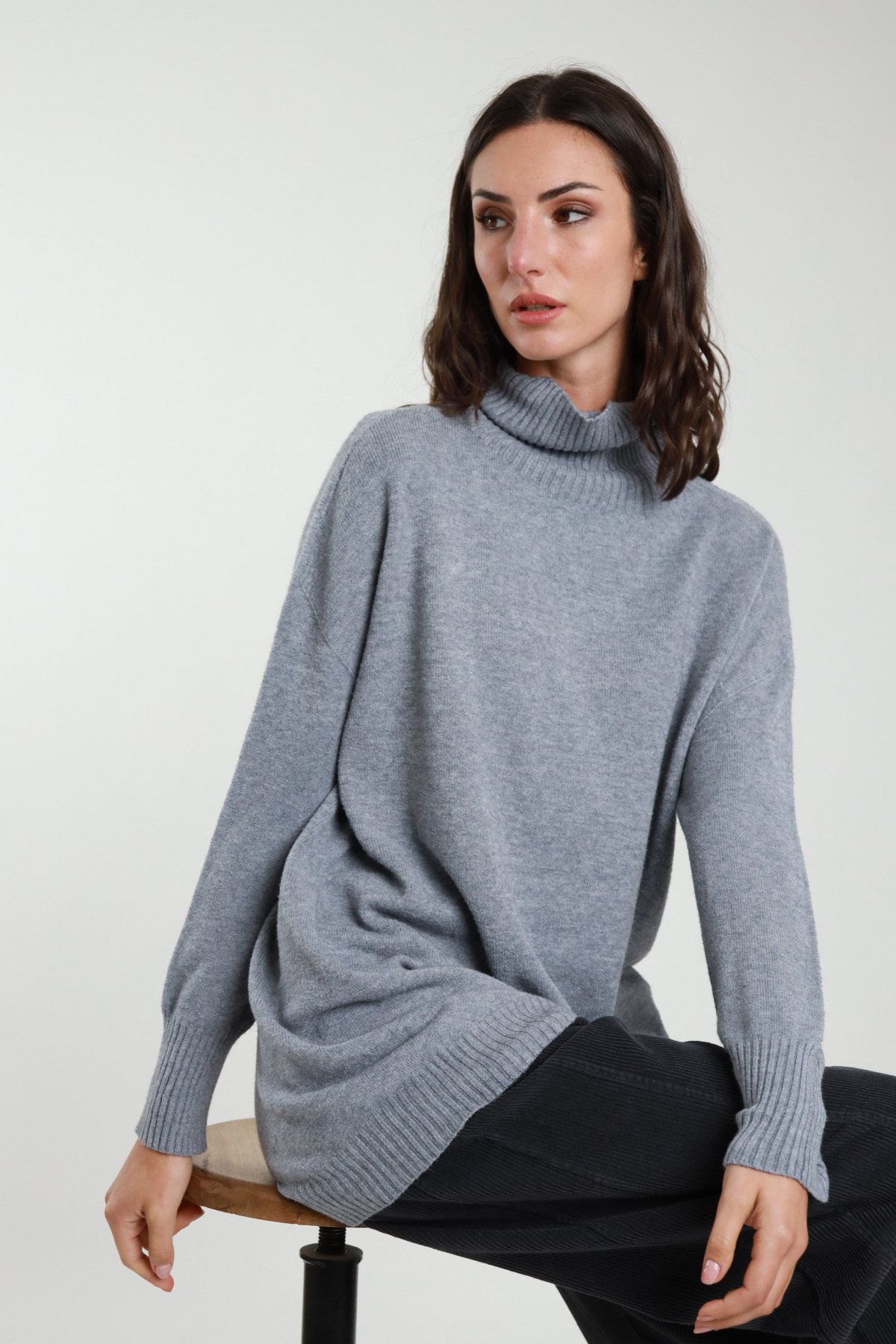 Lockerer, langer, gerippter Rollkragenpullover. 50 % vi 27 % pl 23 % pa