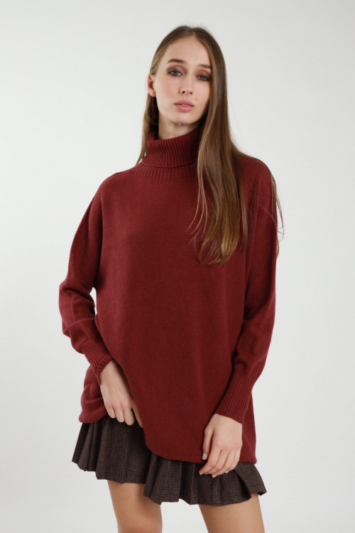 Lockerer, langer, gerippter Rollkragenpullover. 50 % vi 27 % pl 23 % pa