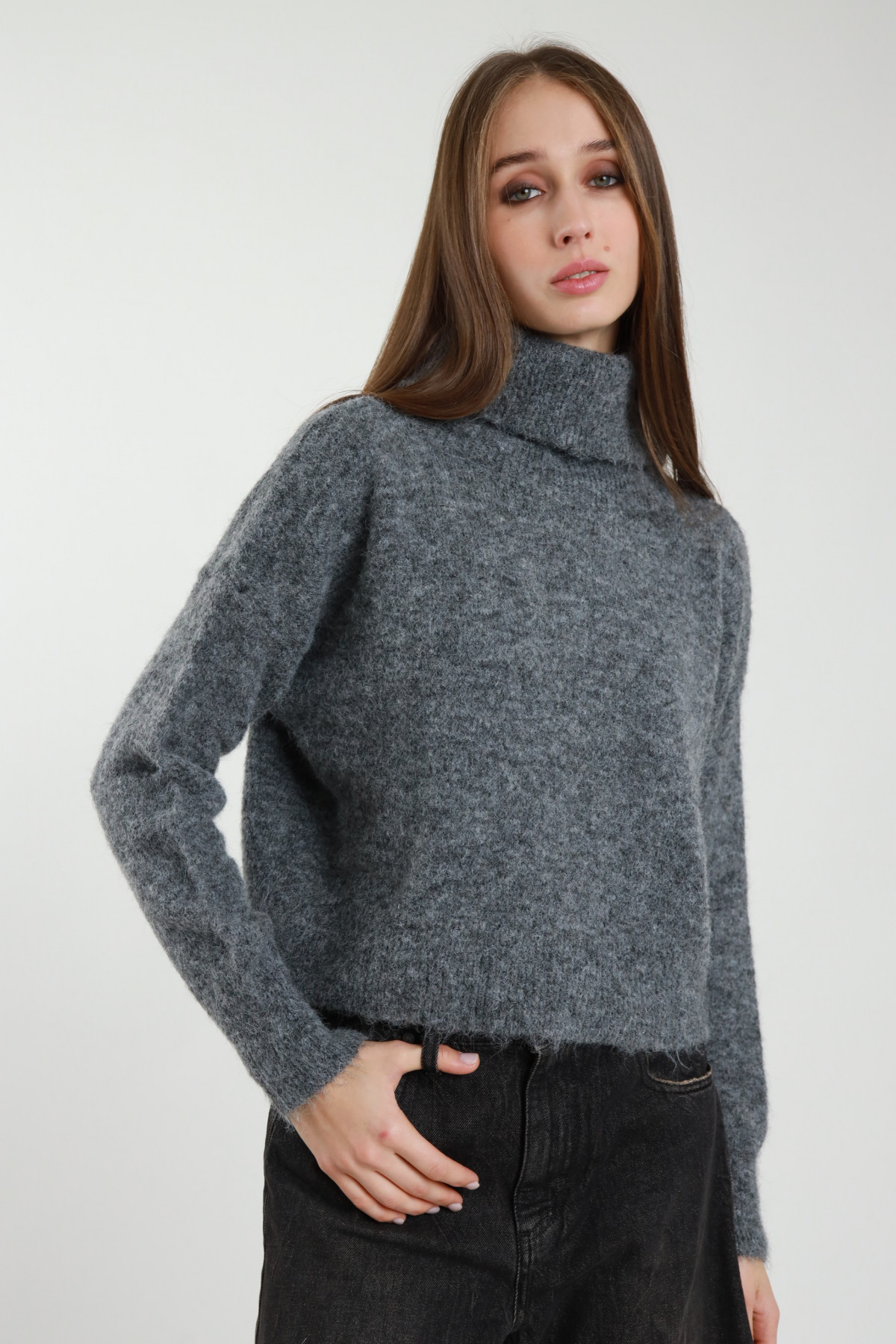 Rollkragenpullover, breiter gerippter Ausschnitt, gerippte Bündchen und Saum. Ernteschnitt. 50 % ac 30 % pl 10 % wo 10 % wm