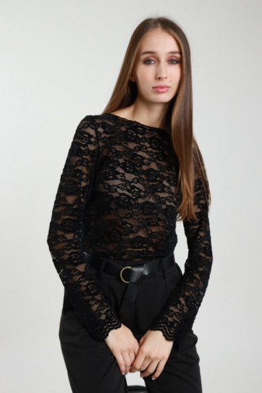 Langärmliges Spitzenshirt mit U-Boot-Ausschnitt. 50%pl 40%ny 10%ea