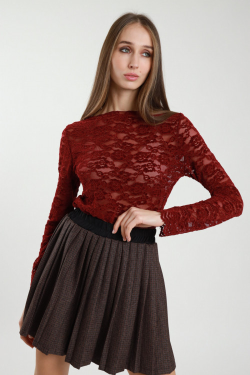 Langärmliges Spitzenshirt mit U-Boot-Ausschnitt. 50%pl 40%ny 10%ea