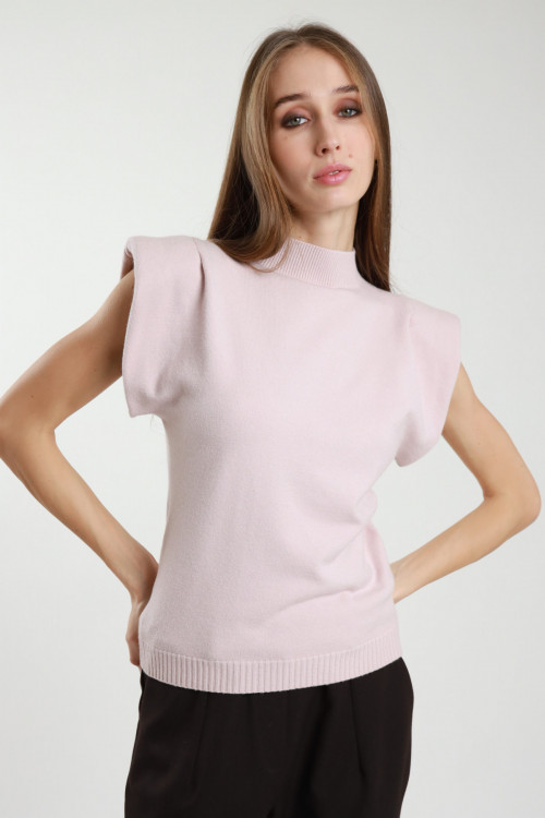 Ärmelloser Rollkragenpullover mit gepolsterten Schultergurten. 50 % vi 27 % pl 23 % pa