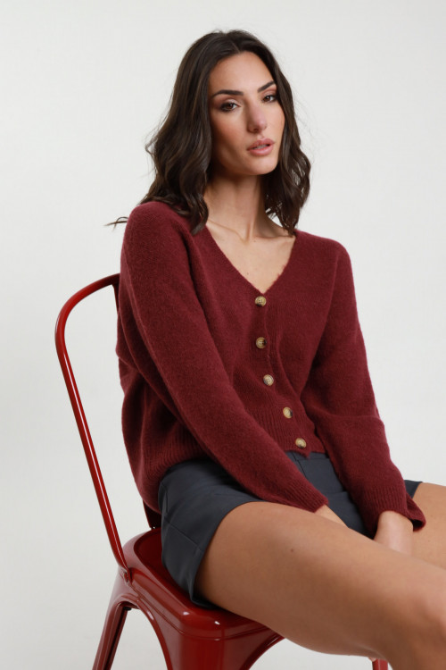 Cardigan Schließung von Knöpfen mit gestickten Hund. 57%PC 29%PL 7%WO 7%VI