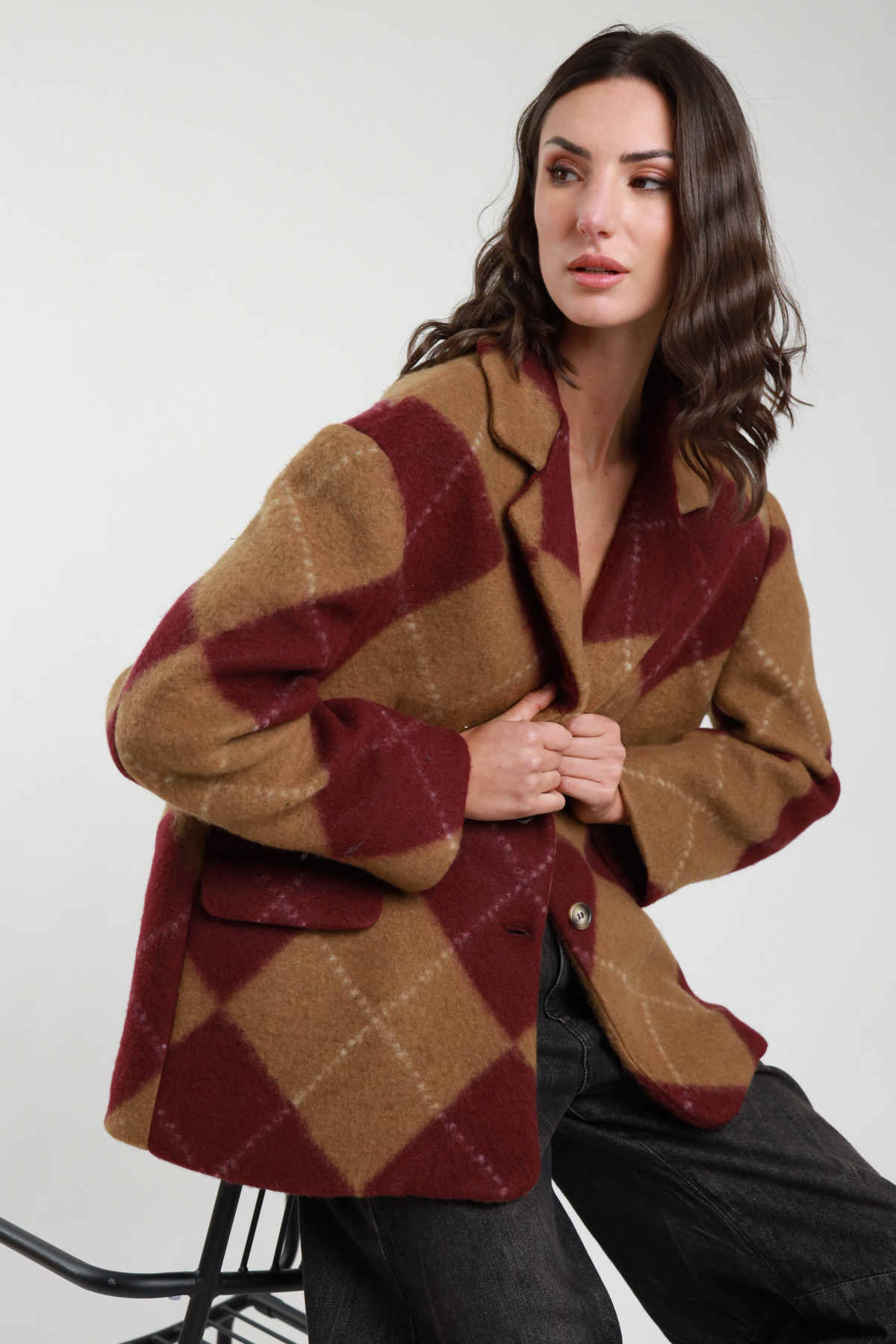 Übergroßer Mantel mit Rautenmuster am Revers. 100%pl