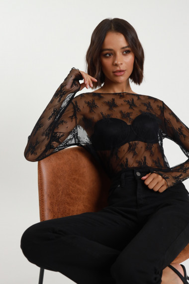 Maglia Maniche Lunghe in Pizzo con Scollo a Barchetta.
