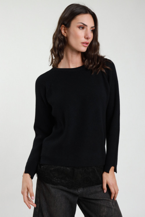 Pullover mit Rundhalsausschnitt und Spitze an der Unterseite. 100 % pa + 50 % vi 27 % pl 23 % pa
