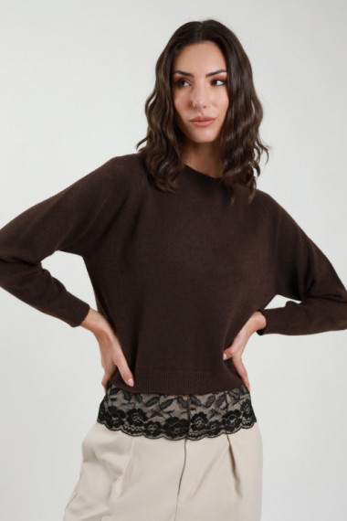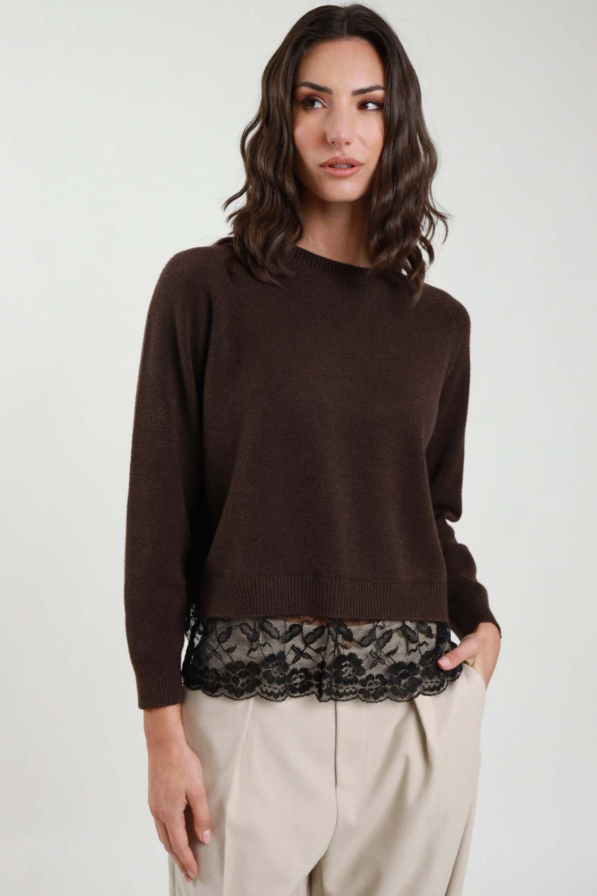 Dünner Crop-Pullover mit Rundhalsausschnitt und Spitze an der Unterseite. 100 % pa + 50 % vi 27 % pl 23 % pa