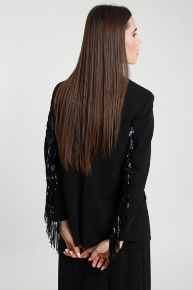 Double-breasted double-breasted blazer in matte and pinstripe patterns. Two front welt pockets with flap. 58%pl 40%co 2%af