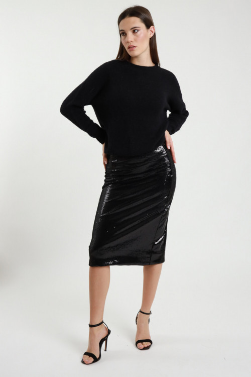 Longuette con Spacco e Inserto in Plissè sul Fronte.
