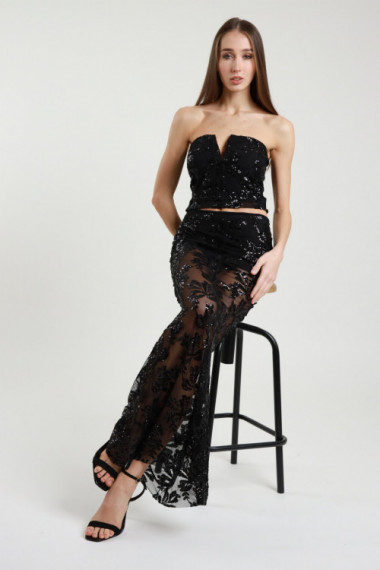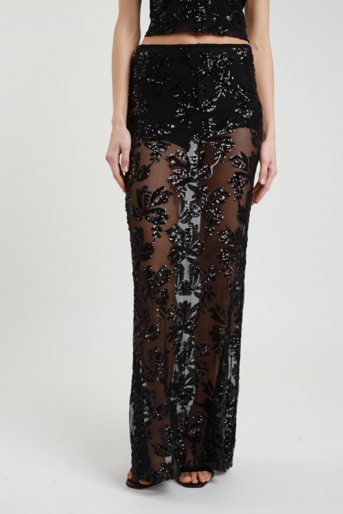 Pinstripe Mini Skirt with Sequined Flowers and Concealed Zip Closure. 34%pl 34%vi 2%ea