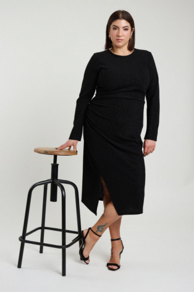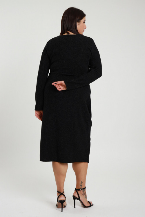 Langes ausgestelltes Kleid, V-Ausschnitt mit Knopf – Linie Curvy Susy Star. 100%pl