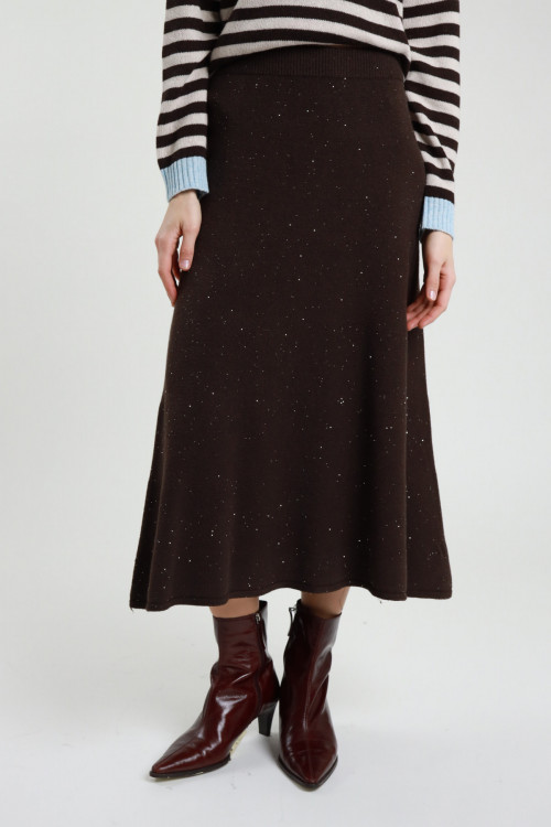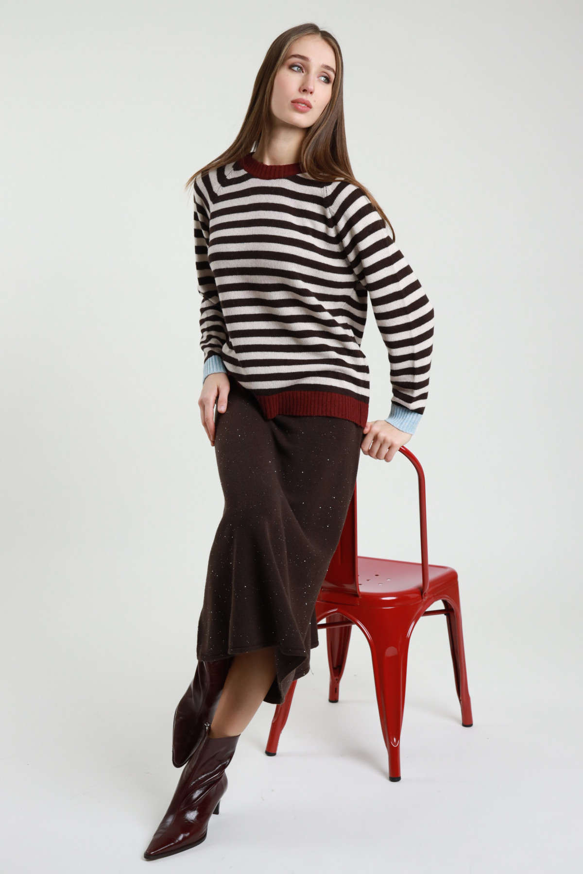 Maglioncino Gircollo con Trecce e Paillettes. Orli a Coste. Slim Fit.