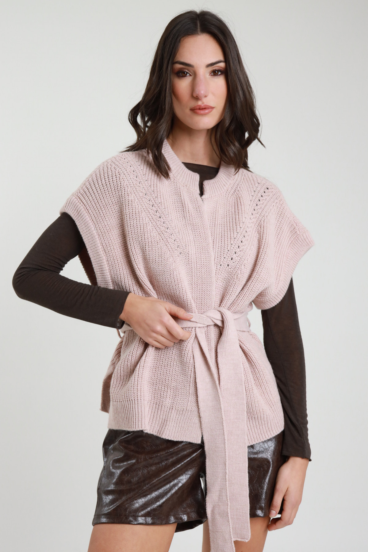 Gestrickte Weste mit Stickerei und Schlüsselband. 35 % vi 30 % ac 20 % pl 15 % pa