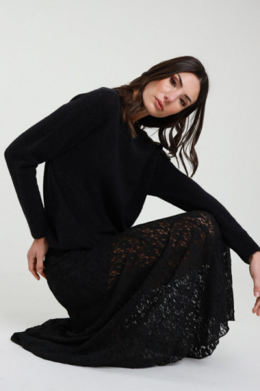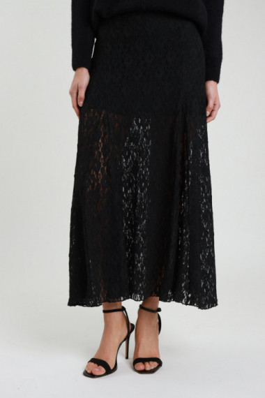 Gonna Lunga Elasticizzata con 2 Spacchi sul Fronte, Chiusura Zip Laterale.