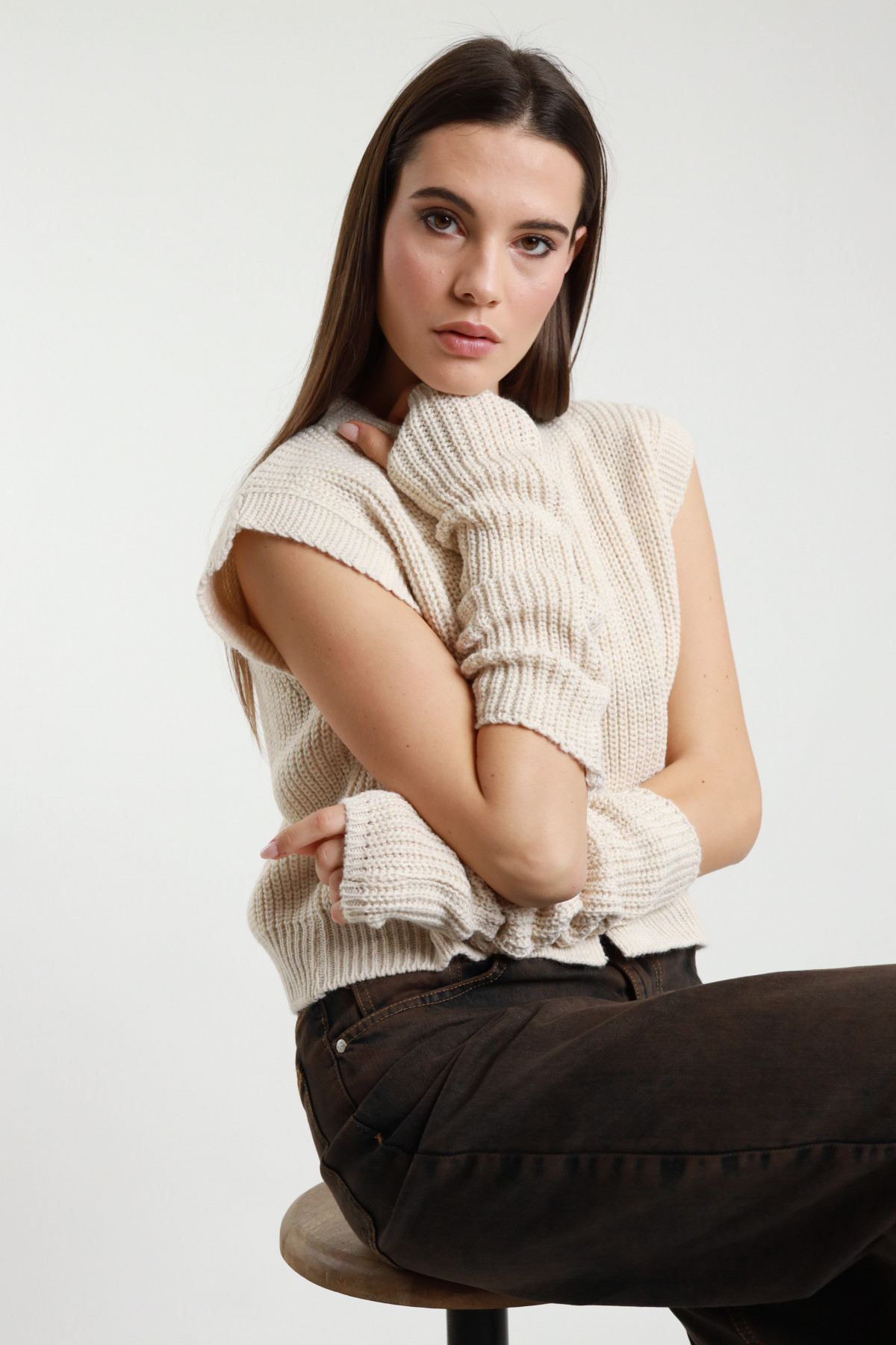 Maglia Cu-Out in Lurex Scollo V e Applicazioni Micro Paillettes.