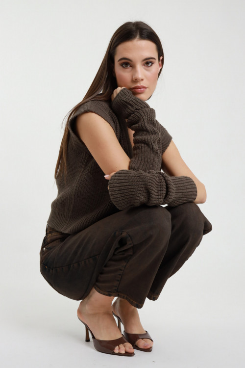 Maglione Girocollo con Scritta Ricamata "Ti Voglio Bene" e Rotture sul Fondo.