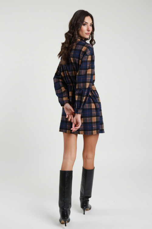 Short crew-neck dress with buttons on the front and belt at the waist. 78%pl 18%vi 4%ea