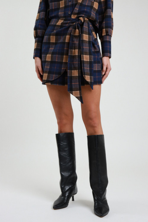 Pinstripe Mini Skirt with Sequined Flowers and Concealed Zip Closure. 34%pl 34%vi 2%ea