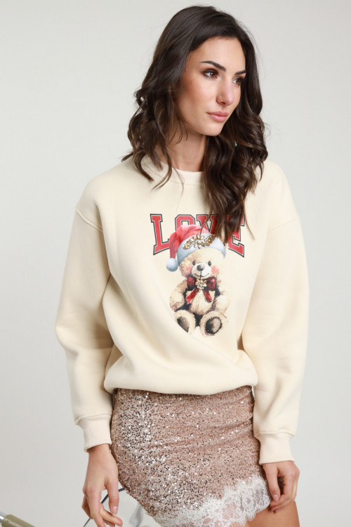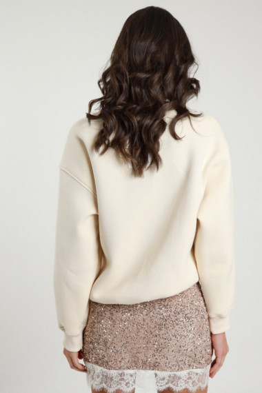 Covering sweatshirt with rabbit application with rhinestones and writings. 65%co 35%PL