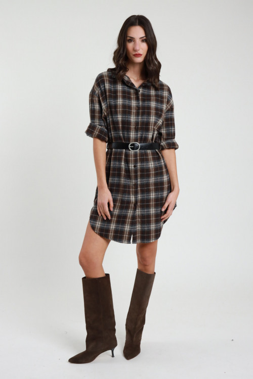 Langes Kleid mit verstellbaren, schmalen Gurten mit Stickerei am Boden und Ausschnitt, Pied de Poule Fantasy. Abnehmbare Culotte im Kleid enthalten. 100%pl