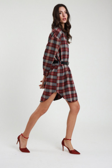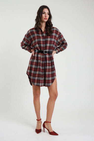 Langes Kleid mit verstellbaren, schmalen Gurten mit Stickerei am Boden und Ausschnitt, Pied de Poule Fantasy. Abnehmbare Culotte im Kleid enthalten. 100%pl