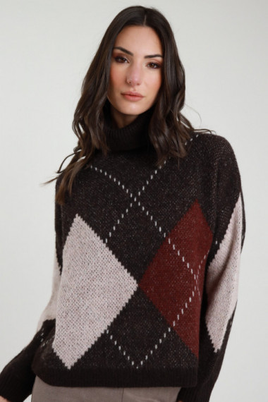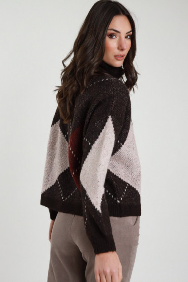 Maglia Multicolor Scollo a Barchetta con Inserti a Costine.