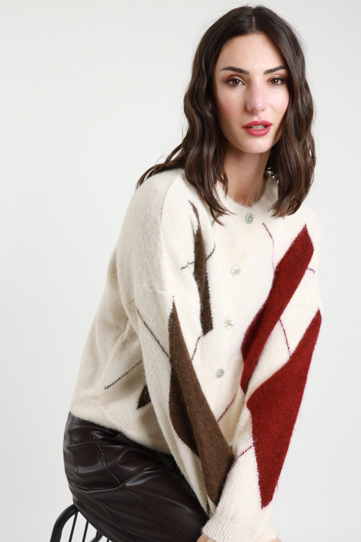 Cardigan con Disegnp Rombi sul Fronte, Orli a Costine.