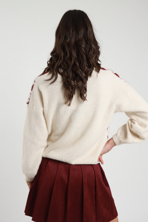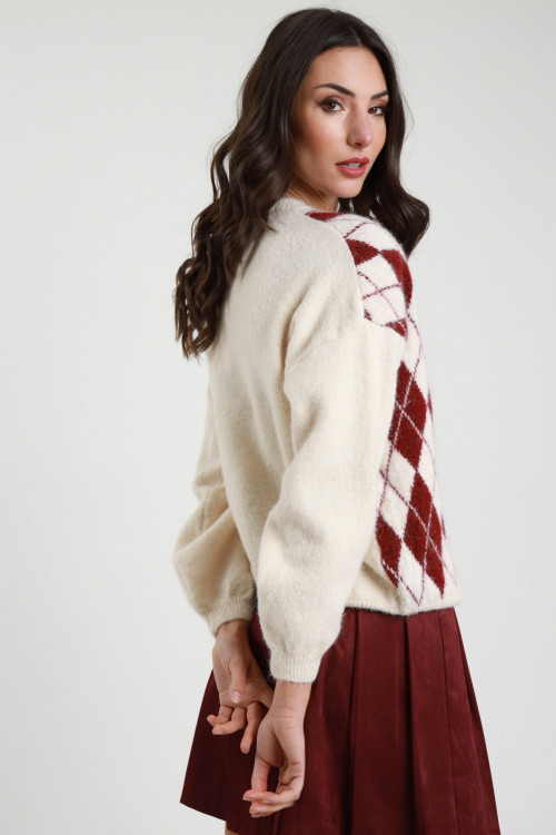 Maglia Traforata Scollo V con Maniche a Palloncino, dettaglio Tessuto Micro Paillettes.
