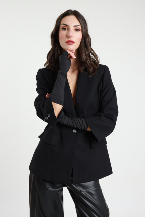 Double-breasted jacket in heavy fabric with flounce on the sleeve and button on the cuff. 65%pl 33%vi 2%ea+100%pl