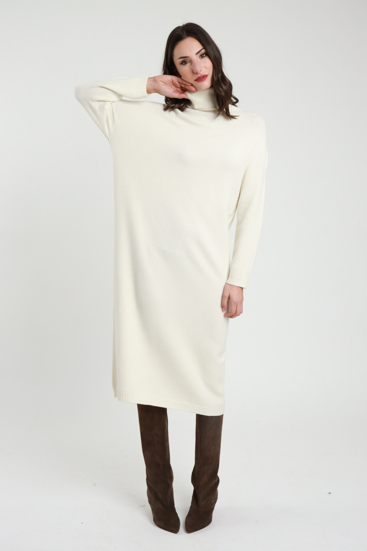 Long dress in cashmere fantasy with V -neck, elastic and waist belt, balloon sleeves in transparency. 100%PL