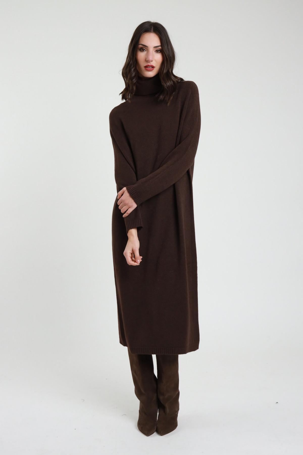 Long dress in cashmere fantasy with V -neck, elastic and waist belt, balloon sleeves in transparency. 100%PL