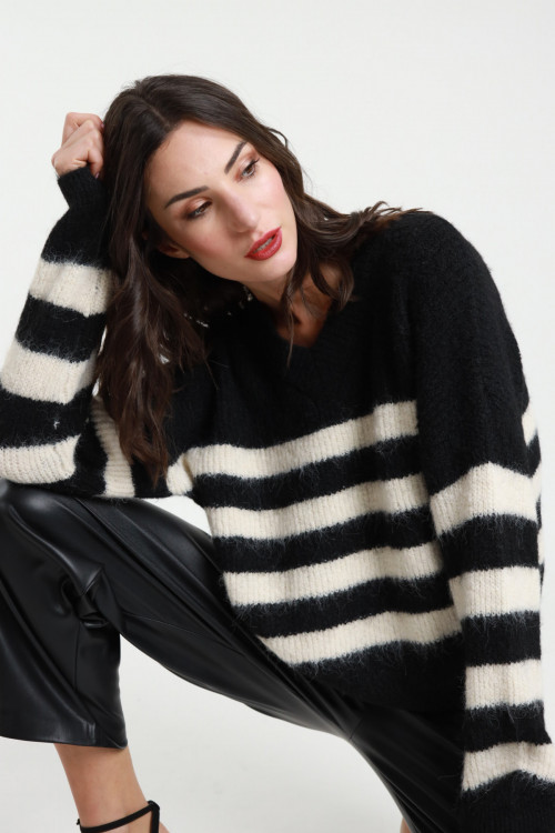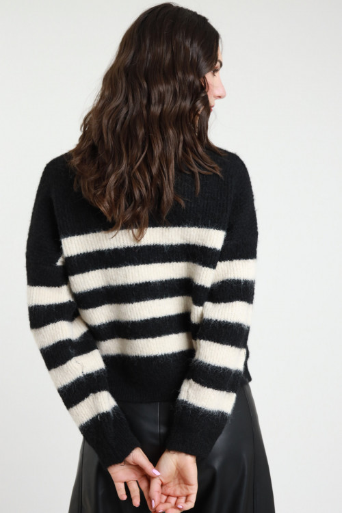 High collar striped turtleneck with contrasting edges. 68%pc 12%pl 11%pa 6%wo 3%ea