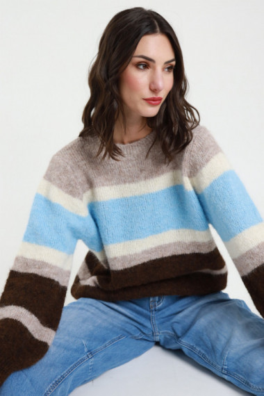 Gestreifter Pullover, Rundhalsausschnitt mit gerippten Säumen. 57 % pc 29 % pa 7 % vi 7 % wo