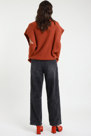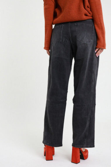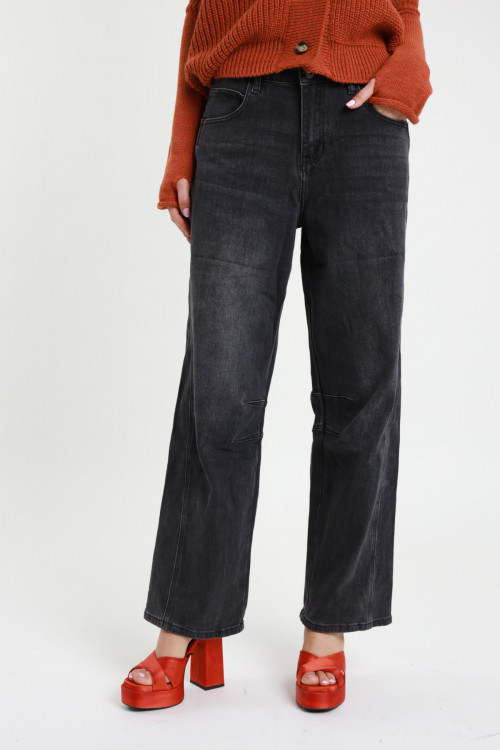 Denim Con Stampa Floccata, Taglio Ad Ovetto Con Risvolto, Tasche A Portafoglio e Cinturina In Vita.