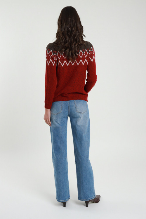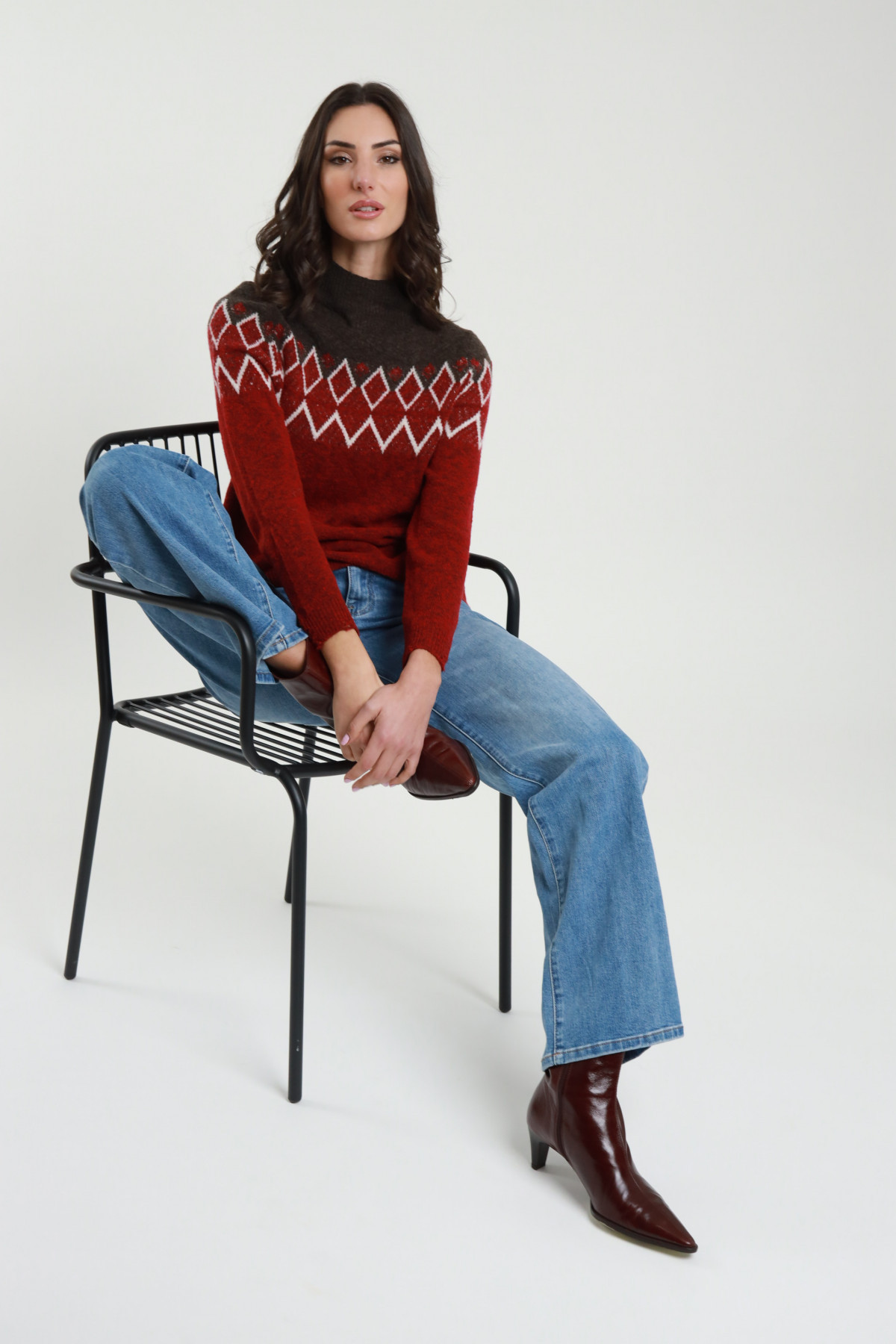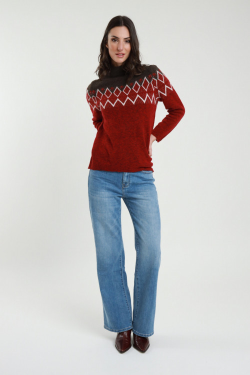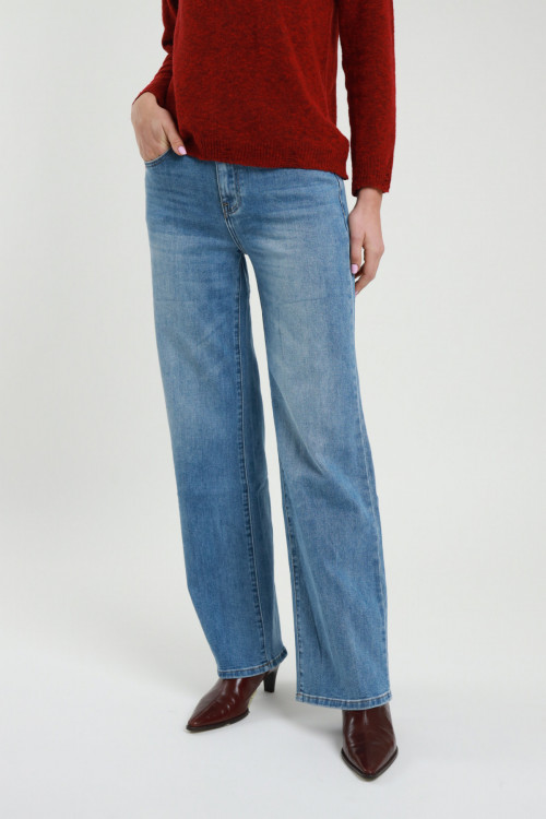 Denim Con Stampa Floccata, Taglio Ad Ovetto Con Risvolto, Tasche A Portafoglio e Cinturina In Vita.