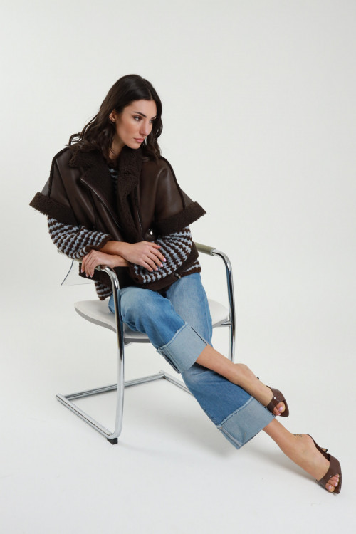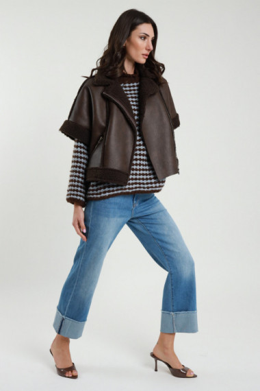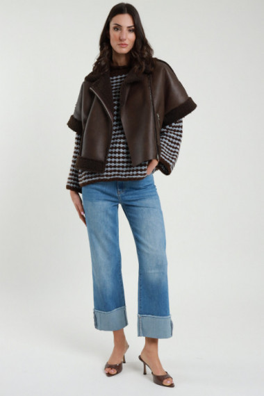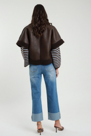 Giacchino Crop in Ecodainetto con Tasche Applicate.