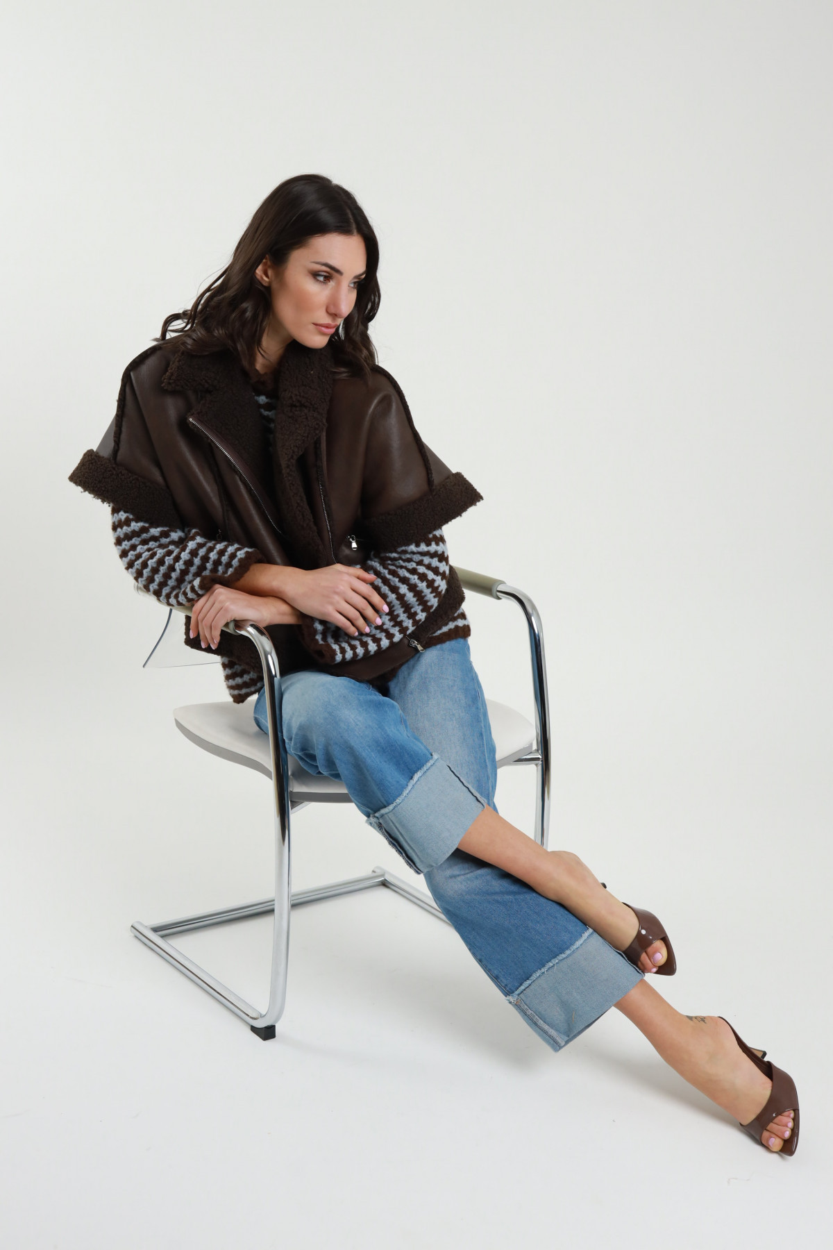 Blazer Over Inserti in Lurex con Tasche a Filetto con Pattina.