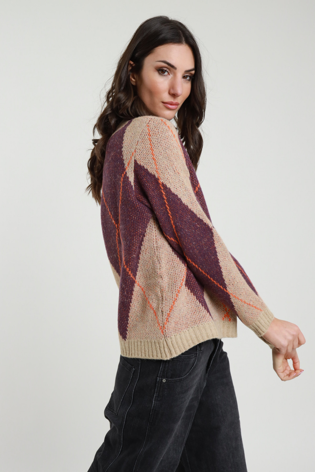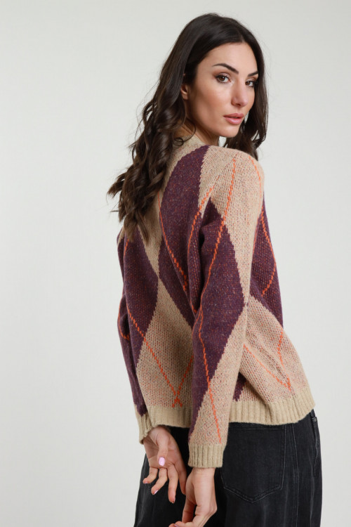 Maglione Girocollo con Maniche a Palloncino Bicolor e Fondo a Contrasto.