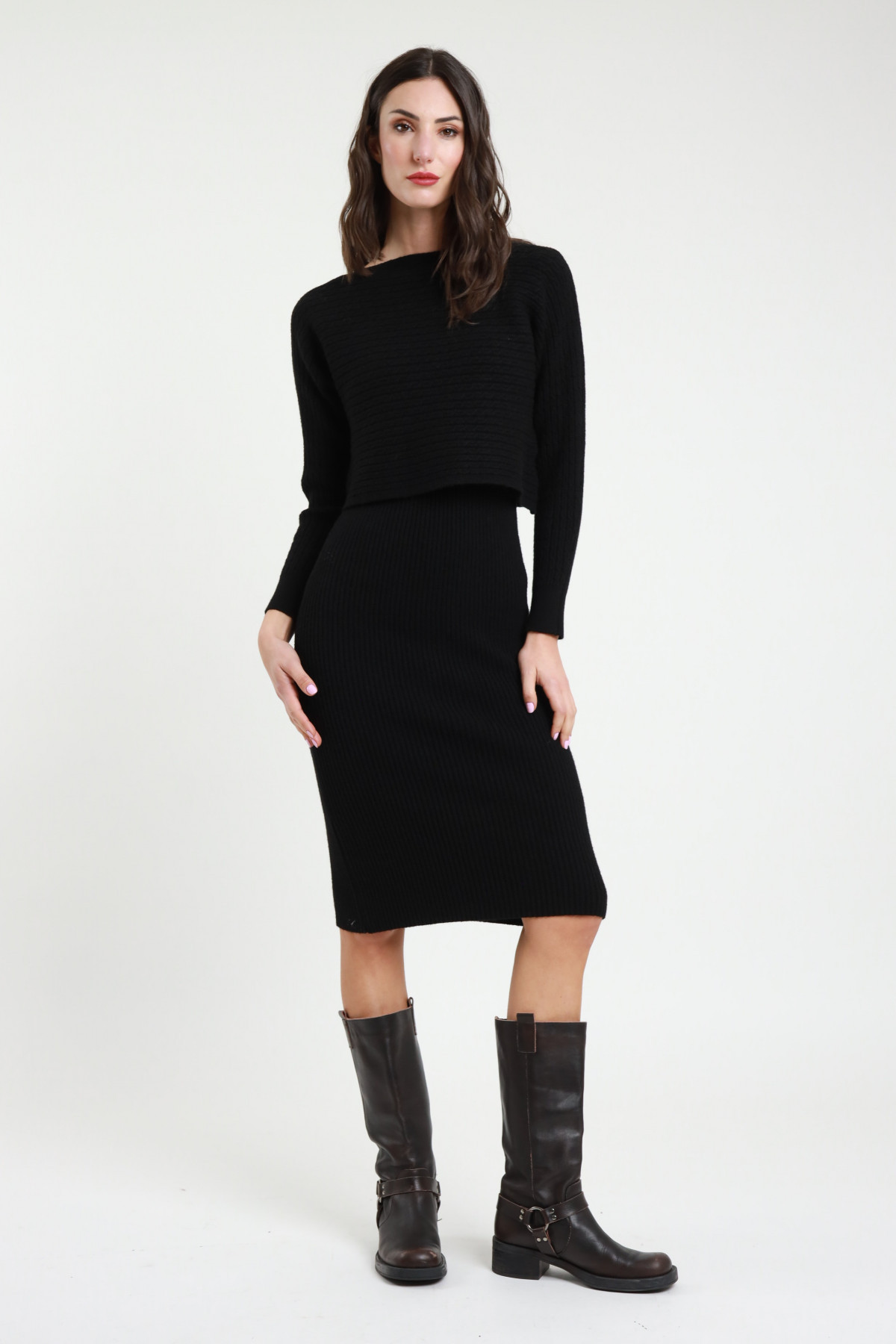 Thin crew neck crop sweater with lace on the bottom. 100%pa+50%vi 27%pl 23%pa