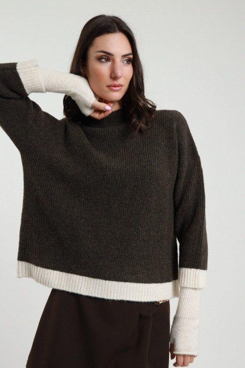 Mehrfarbiger Pullover mit U-Boot-Ausschnitt und gerippten Einsätzen. 52 % vi 26 % pl 22 % pa