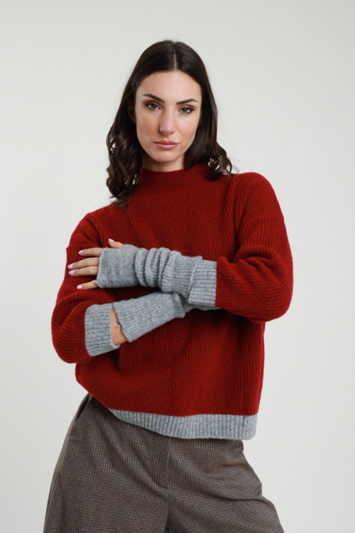 Mehrfarbiger Pullover mit U-Boot-Ausschnitt und gerippten Einsätzen. 52 % vi 26 % pl 22 % pa