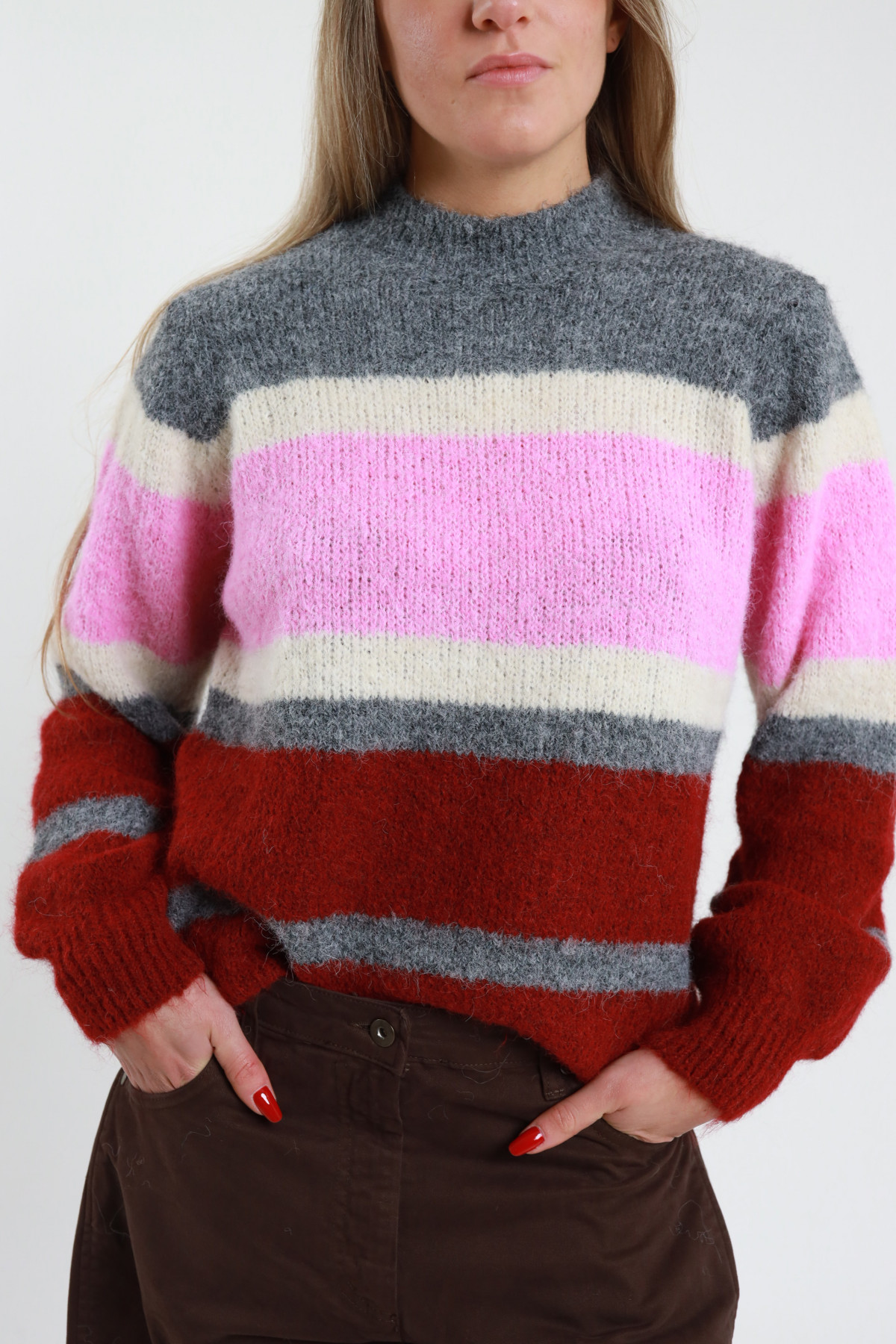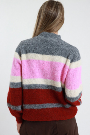 Pullover mit unregelmäßigen Streifen. Normale Passform. 59 %rPet 21 %pa 11 %pl 8 %wo 1 %ea