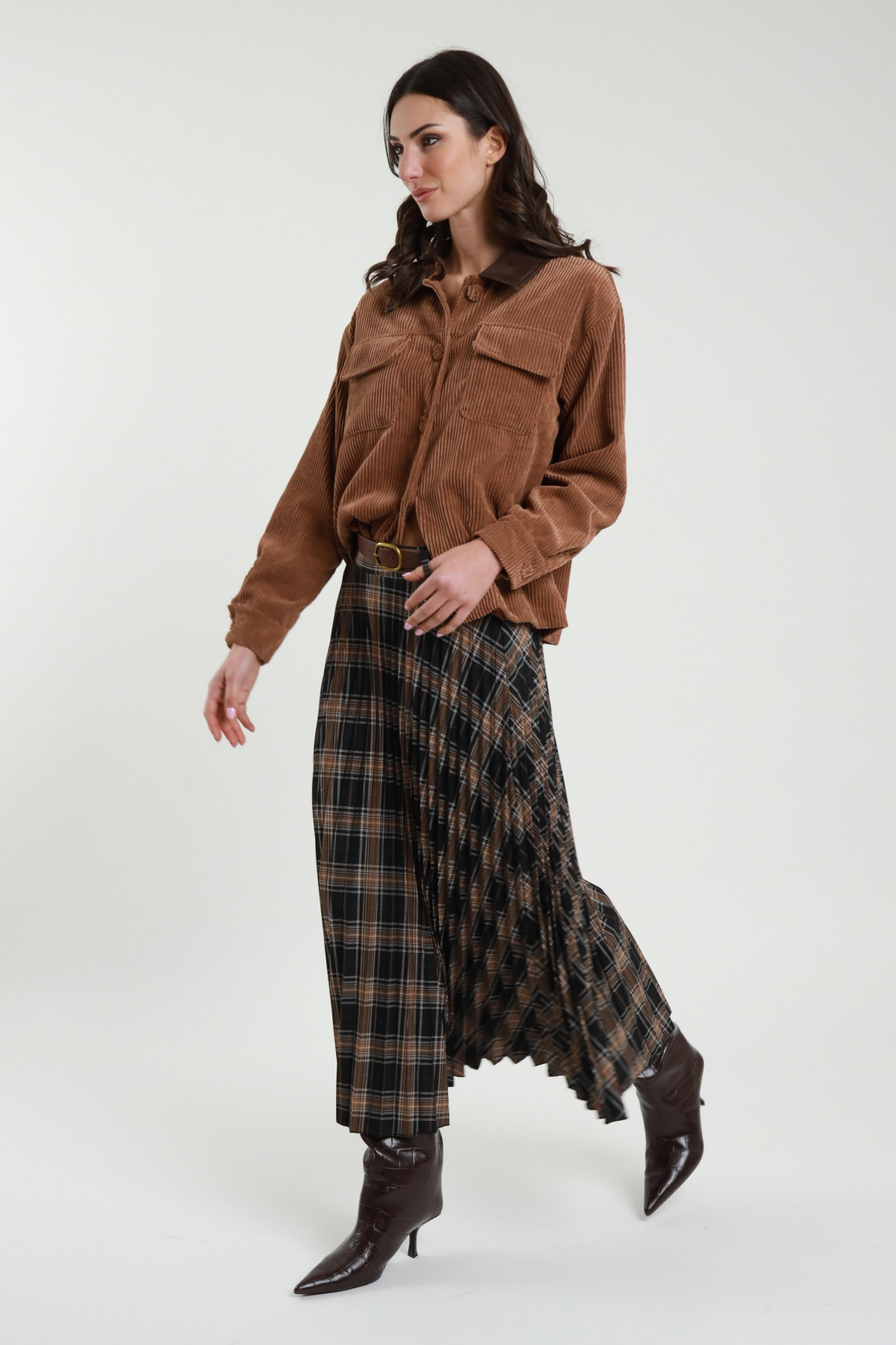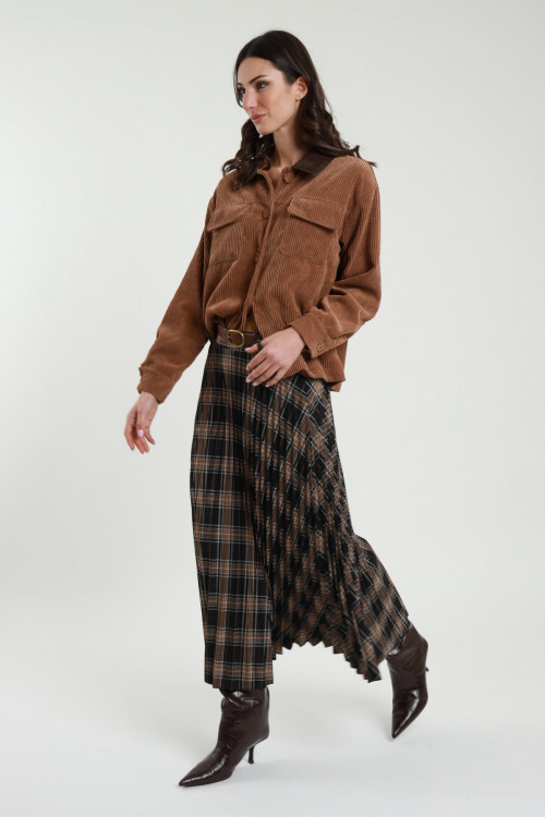Gonnellona a Pieghe con Spacco Laterale e Passanti con Cintura in Vita.