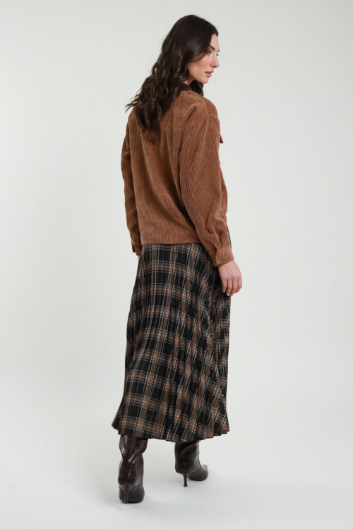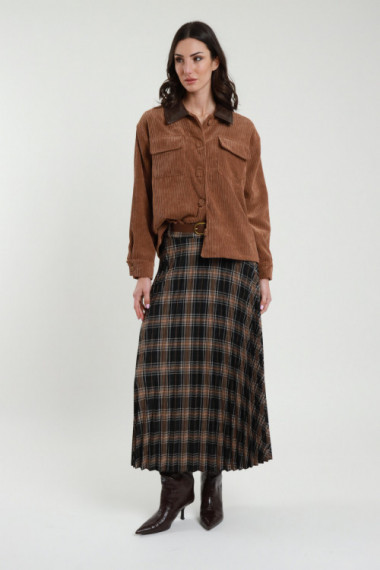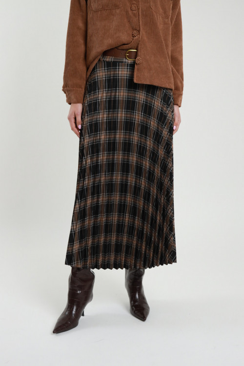 Gonnellone Check con Elastico in Vita e Balza sul Fondo.