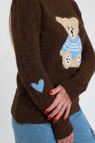 Pullover mit Rundhalsausschnitt und aufgesticktem Bären und Herzen an den Ellbogen. 50 % ac 30 % pl 10 % wo 10 % ws