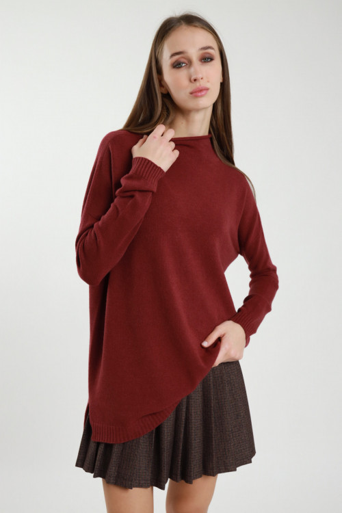 Long Oversized Sweater Made of Soft Semi Viscose with Crater Neck Detail